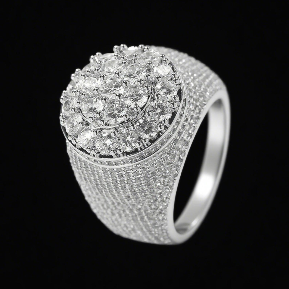 แหวนเงินแท้ 925 ประดับเพชรทรงกลมเต็มวง ระยิบระยับ สไตล์ฮิปฮอป