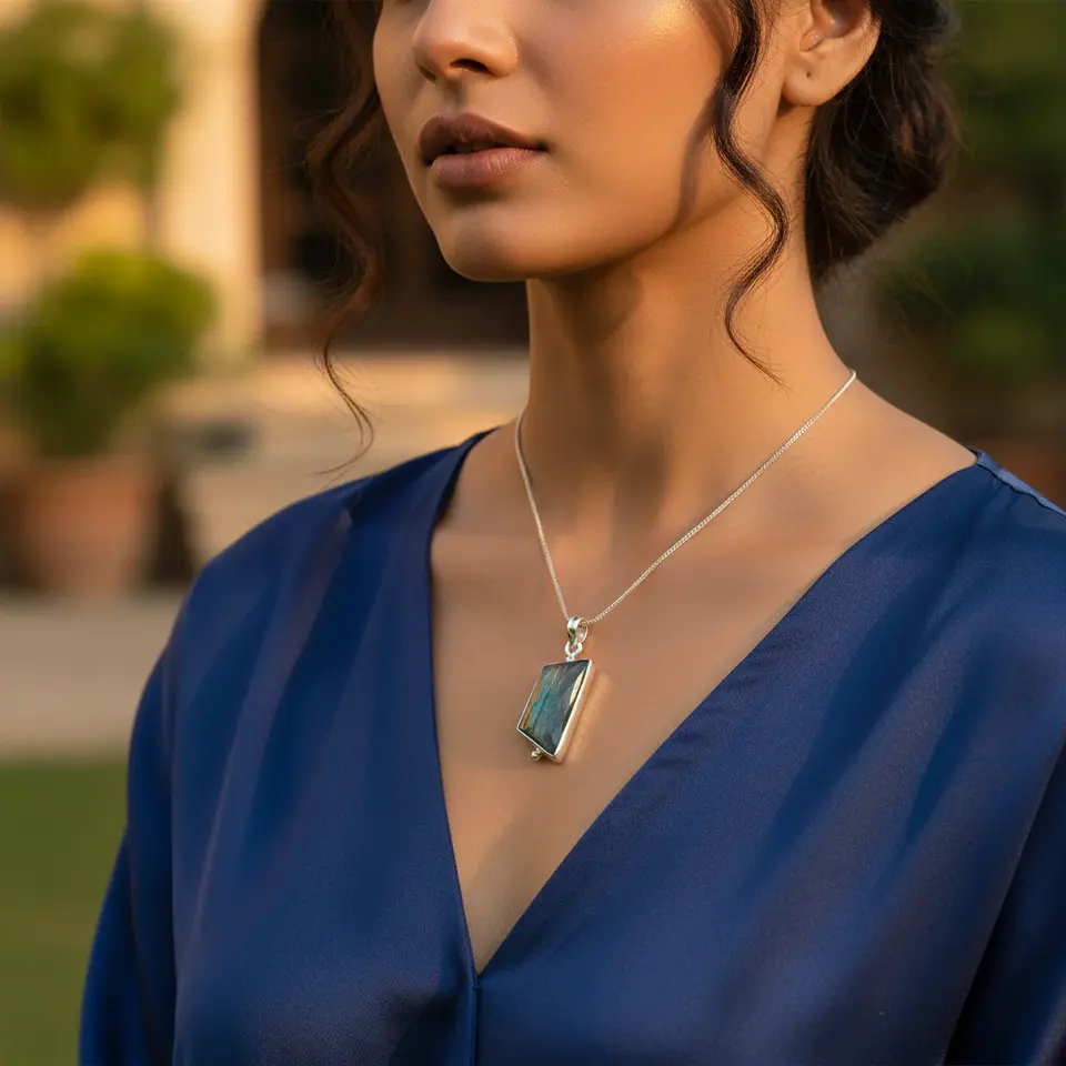 จี้เงินแท้ 925 ประดับลาบราโดไรต์สำหรับผู้หญิง เครื่องประดับพลอยโรสโกลด์ คริสตัล จี้เพชร จี้โลหะประดับมุก
