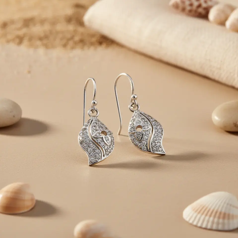 ต่างหูเงินแท้ 925 ประดับคริสตัล ดีไซน์ใบไม้ สำหรับผู้หญิง เครื่องประดับคริสตัลสุดหรู