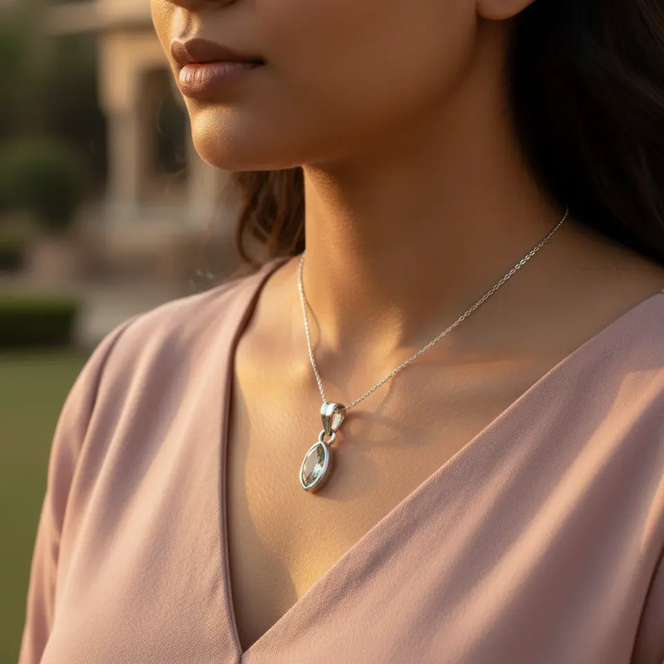 จี้เงินแท้ 925 ทรงมาร์ควิส ประดับพลอย ชุบทองคำขาวและโรเดียม สำหรับเครื่องประดับผู้หญิง