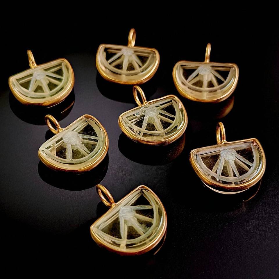 จี้เงิน925ทรงเมลอนสีเงินเลมอนควอทซ์แกะสลักทำมือจี้อัญมณีชุบทองแบบทำมือ