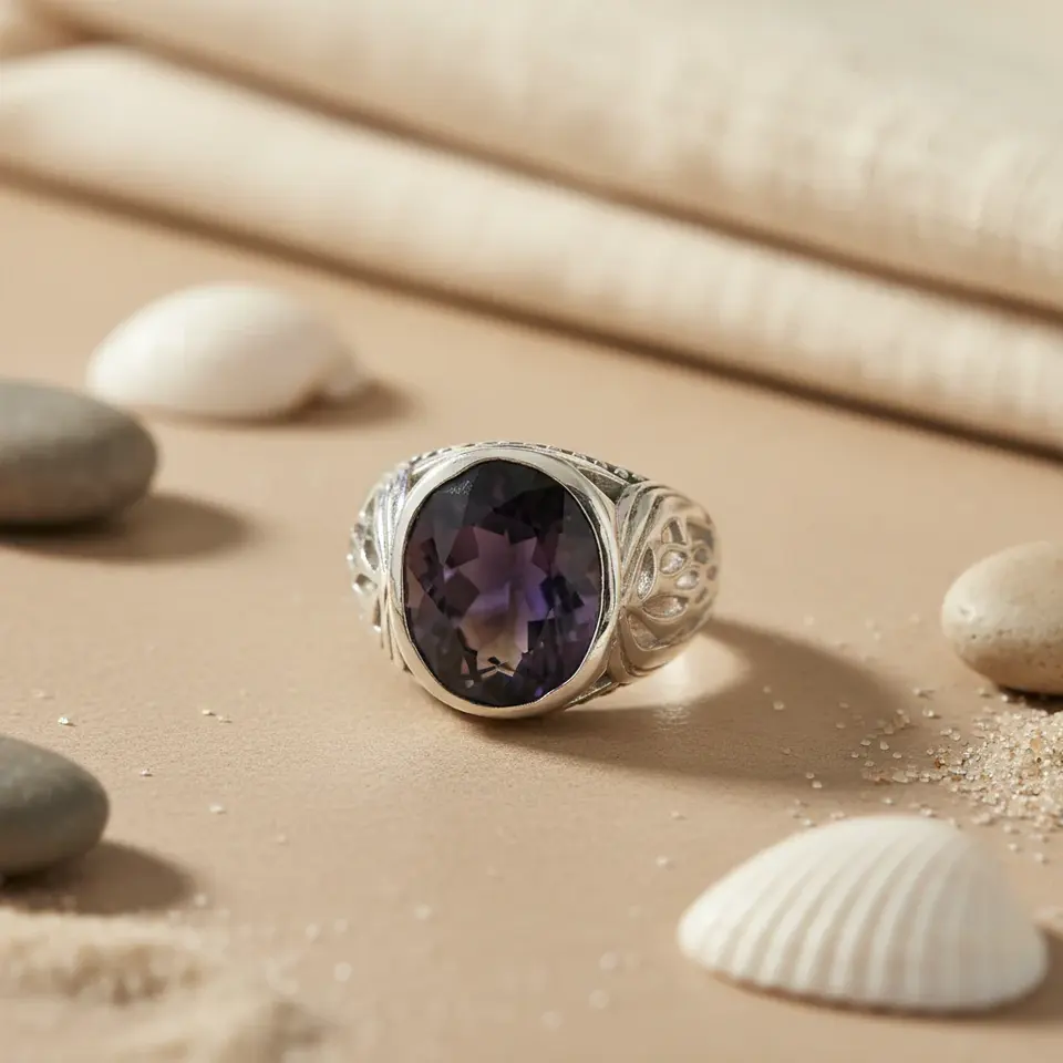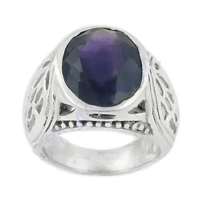 แหวนเงินแท้ 925 สำหรับผู้ชาย ประดับด้วยพลอยโทแพซทรงรี ชุบโรเดียม ประดับด้วยพลอยไพลิน งานจิวเวลรี่ชั้นดี เหมาะสำหรับเป็นของขวัญ