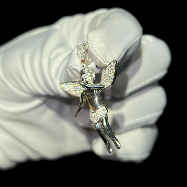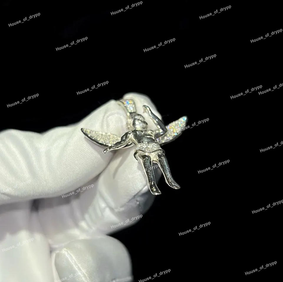 จี้สร้อยคอรูปนางฟ้าประดับเพชรโมอิสซาไนต์ เงินแท้ 925 ดีไซน์แบบ Iced Out สไตล์ฮิปฮอป ของขวัญสำหรับเขาและเธอ