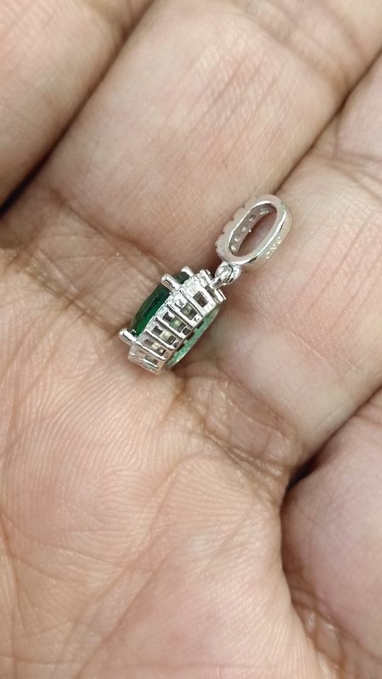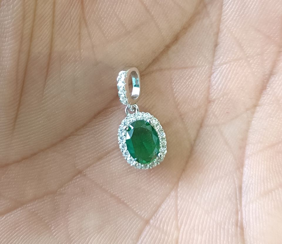 925 Silver Gold Plated Cute Emerald Color Stone Pendant for Her with Chain-Gift