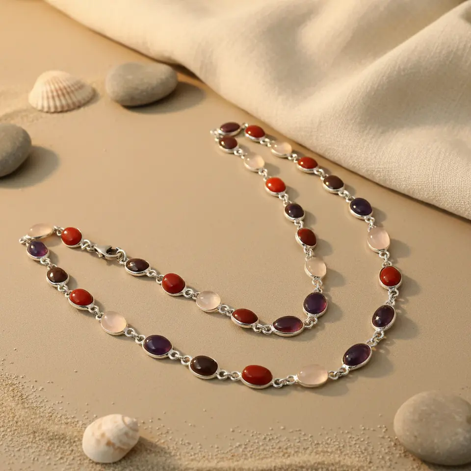 สร้อยคอเงินแท้ 925 ประดับพลอยหลากสีสำหรับผู้หญิง สไตล์ศาสนา ประดับด้วยพลอยไพลิน เทอร์ควอยซ์ ปะการัง เปลือกหอย อาเกต ควอตซ์ ของขวัญที่สมบูรณ์แบบ
