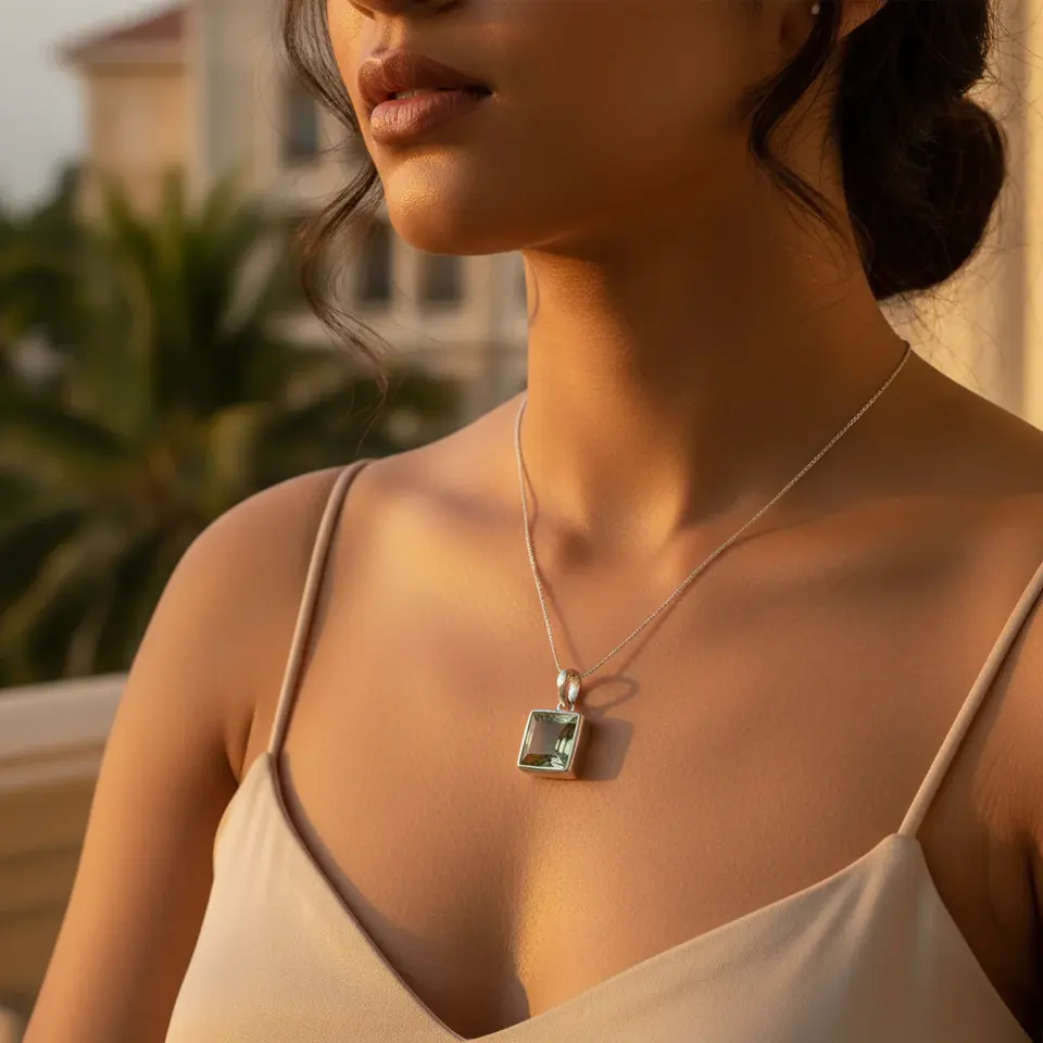 จี้เงินแท้ 925 ประดับด้วยพลอยสีเขียวทรงมรกต โทแพซ และชุบโรเดียมบนทองคำขาว พร้อมสร้อยคอทรงกล่องเรขาคณิตสำหรับผู้หญิง