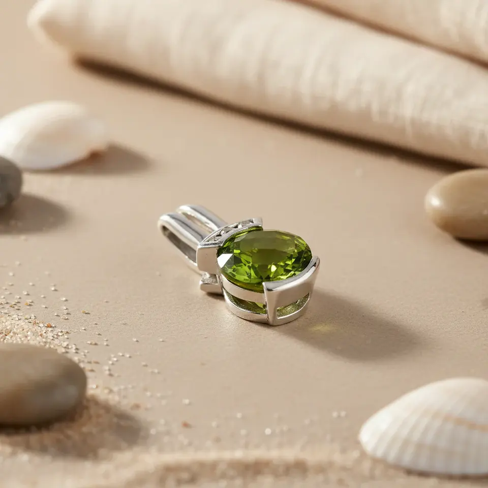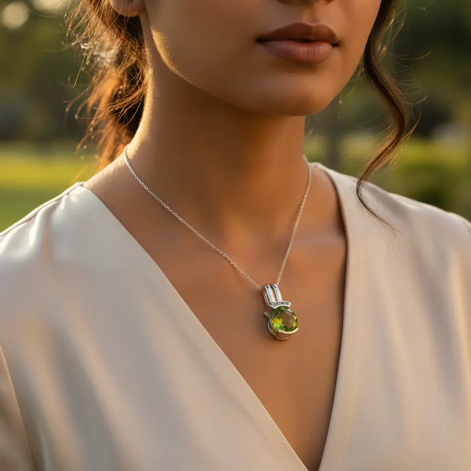 จี้เงินแท้ 925 ประดับพลอยเพริดอตสีเขียวสำหรับผู้หญิง เครื่องประดับพลอยทรงเหลี่ยมแบบ Emerald Cut ชุบโรเดียมสีโรสโกลด์ พร้อมจี้ลายตัวเลข