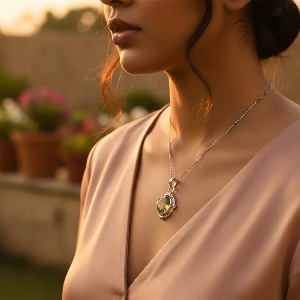 จี้เงินแท้ 925 ประดับเพอริดอทสำหรับผู้หญิง ชุบโรเดียม ทองคำขาว เครื่องประดับอัญมณ์ทางศาสนา ตกแต่งด้วยทองคำขาว ลายตัวเลข