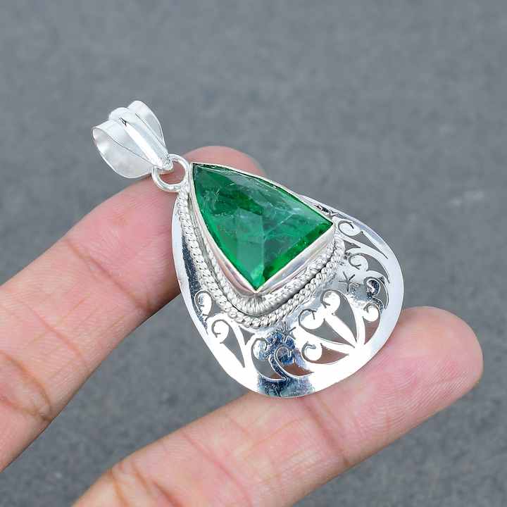 สร้อยอัญมณีสีเขียวบุษราคัมแบบเหลี่ยมเพชรพลอย925ออกแบบให้เป็นสร้อยคอเครื่องประดับจี้สำหรับผู้หญิง