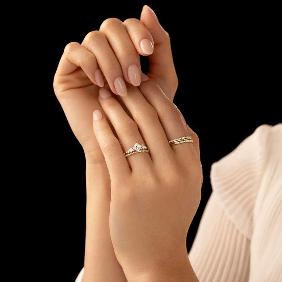 แหวนหมั้นเงินแท้ 925 ทรงเจ้าหญิง สไตล์อาร์ตเดโค ประดับเพชรโมอิสซาไนต์ คอลเลคชั่น
