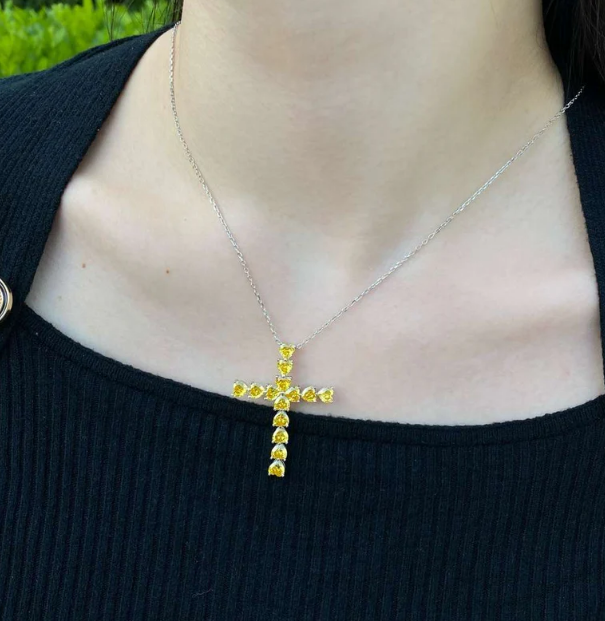 จี้สร้อยคอทรงกากบาทประดับเพชรโมอิสซาไนต์ทรงเจ้าหญิง เงินแท้ 925 ฝังแบบช่อง สไตล์ฮิปฮอป