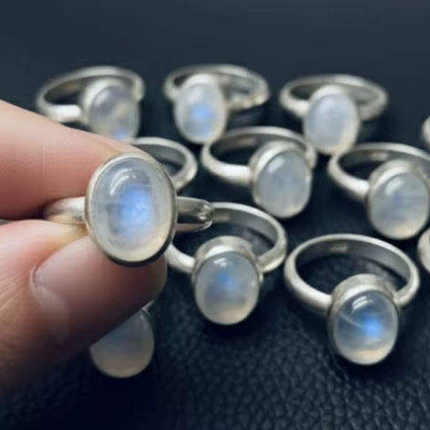 แหวนหมั้นเงินแท้ 925 ประดับมูนสโตนสีรุ้ง ชุบโรเดียม ฝังแบบ Bezel ประดับพลอยธรรมชาติ สำหรับงานแต่งงาน ของขวัญคริสต์มาส สำหรับผู้ชาย