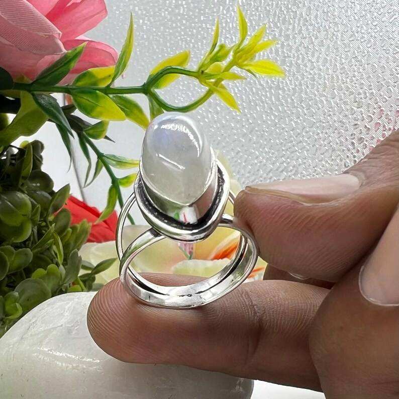 925 Silver Rainbow Moonstone Oval Ring Handmade Boho Statement Jewelry Unique Gemstone Ring For Women Gift