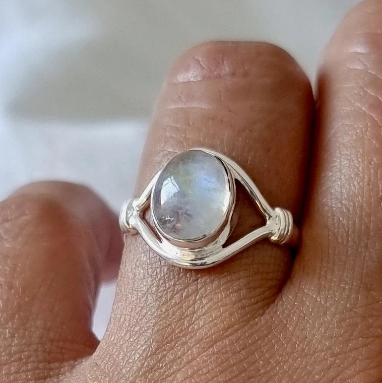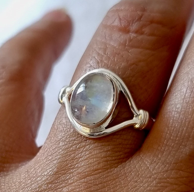 แหวนเงินสีรุ้งประดับพลอยสี925เป็นมิตรกับสิ่งแวดล้อมแหวนโบโฮของผู้หญิงพลอยสีฟ้ามีสีรุ้งประดับอัญมณีชุดประจำวัน