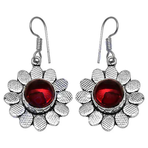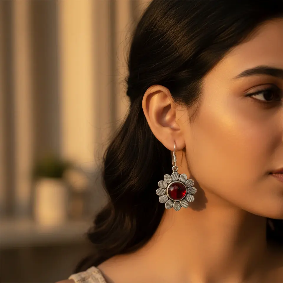 ต่างหูเงินแท้ 925 ประดับพลอยโกเมนสีแดงรูปดอกไม้ ชุบทอง สำหรับผู้หญิง เหมาะสำหรับงานแต่งงาน/งานปาร์ตี้ ประดับด้วยควอตซ์ มุก และเพชร