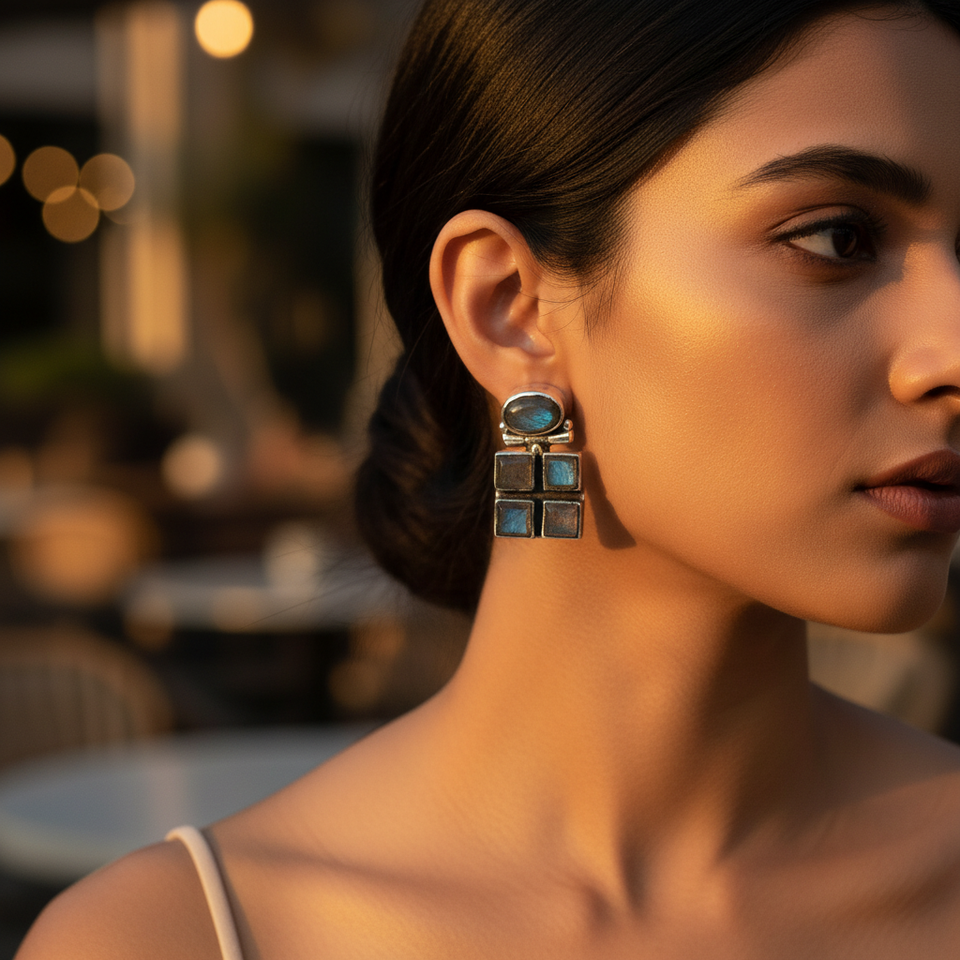 ต่างหูเงินแท้ 925 ชุบโรเดียม ประดับพลอยสี่เหลี่ยมน่ารัก พร้อมลาบราโดไรต์ สำหรับงานแต่งงาน งานฉลองครบรอบ หรือเป็นของขวัญ