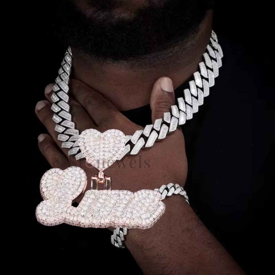 ตะขอชุบโรเดียมสีเงิน925แบบสั่งทำชื่อ VVS ห้องทดลองทำจากเพชรโมอิสซาไนท์จี้เครื่องประดับชั้นดีและเสน่ห์แบบฮิปฮอป
