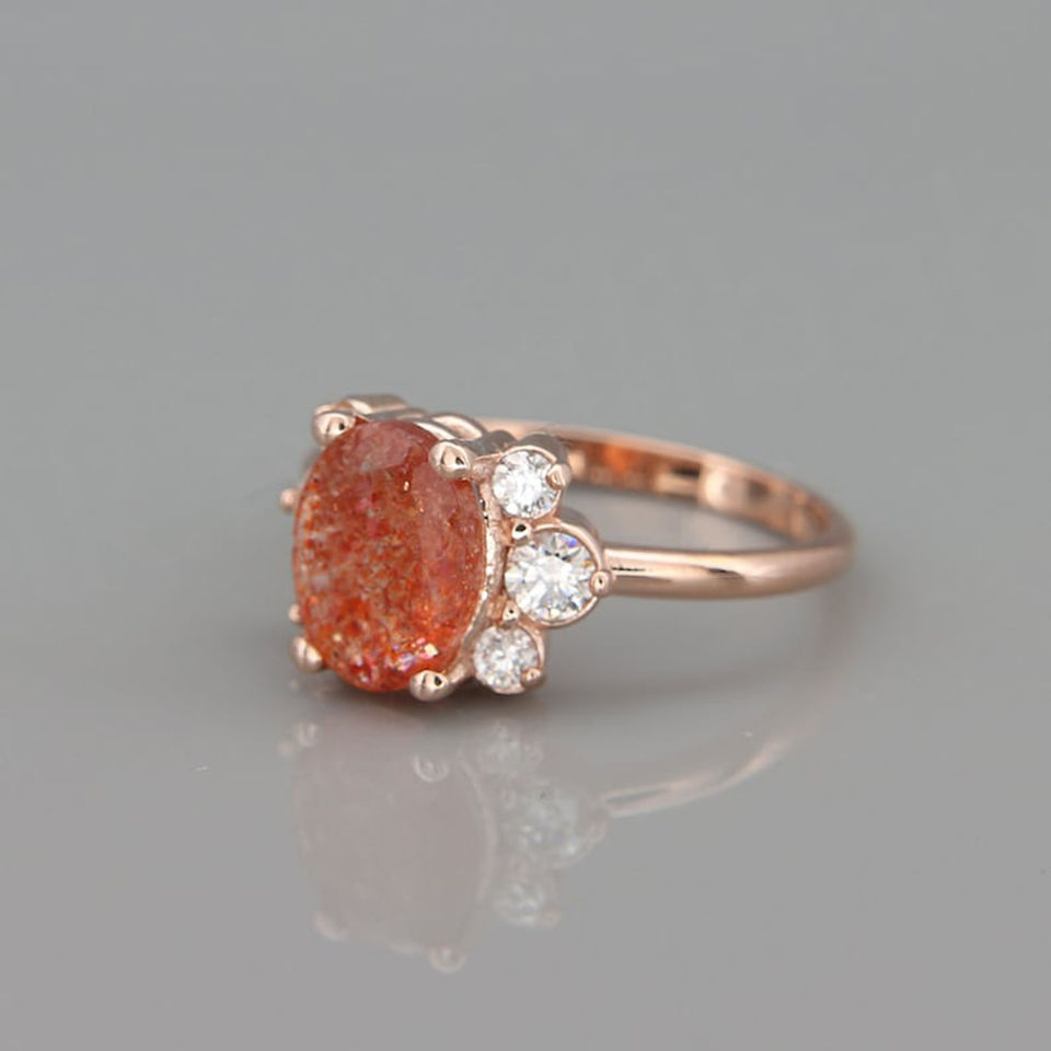 แหวนเงินแท้ 925 ชุบโรเดียม ประดับพลอยซันสโตน สำหรับผู้หญิง เหมาะสำหรับงานแต่งงานและงานปาร์ตี้