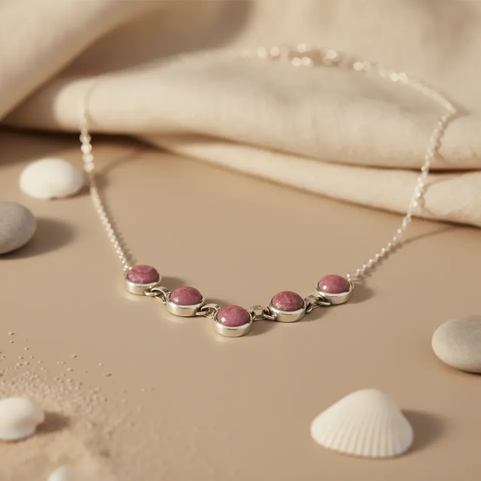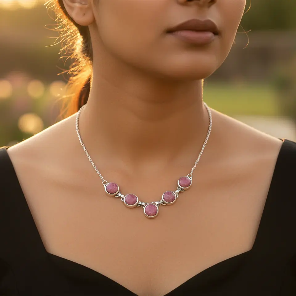 สร้อยคอเงินแท้ 925 ประดับโรโดไนต์ จี้แฟชั่นสำหรับผู้หญิง พร้อมอัญมณี