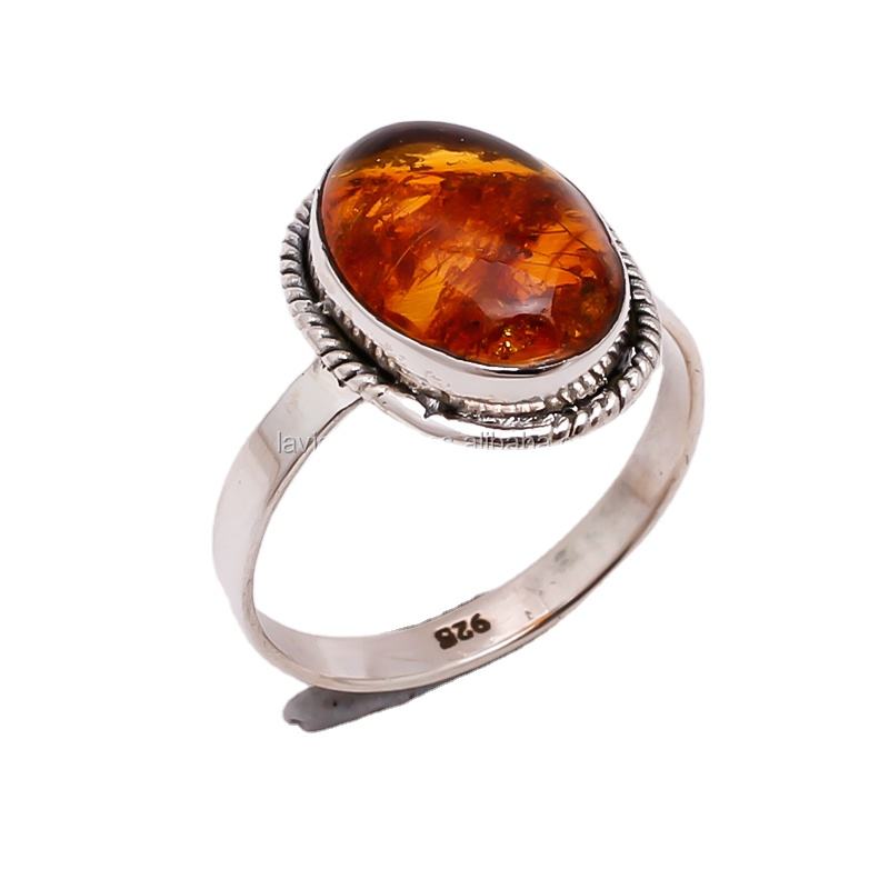 925 Silver Ring Natural Amber Jewelry 925 Sterling Silver Wholesale Rings Suppliers