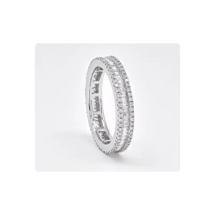 แหวนเงิน 925 ประดับเพชร CVD ทรงบาแกตต์ | เครื่องประดับเพชรแล็บรับรองคุณภาพขายส่ง