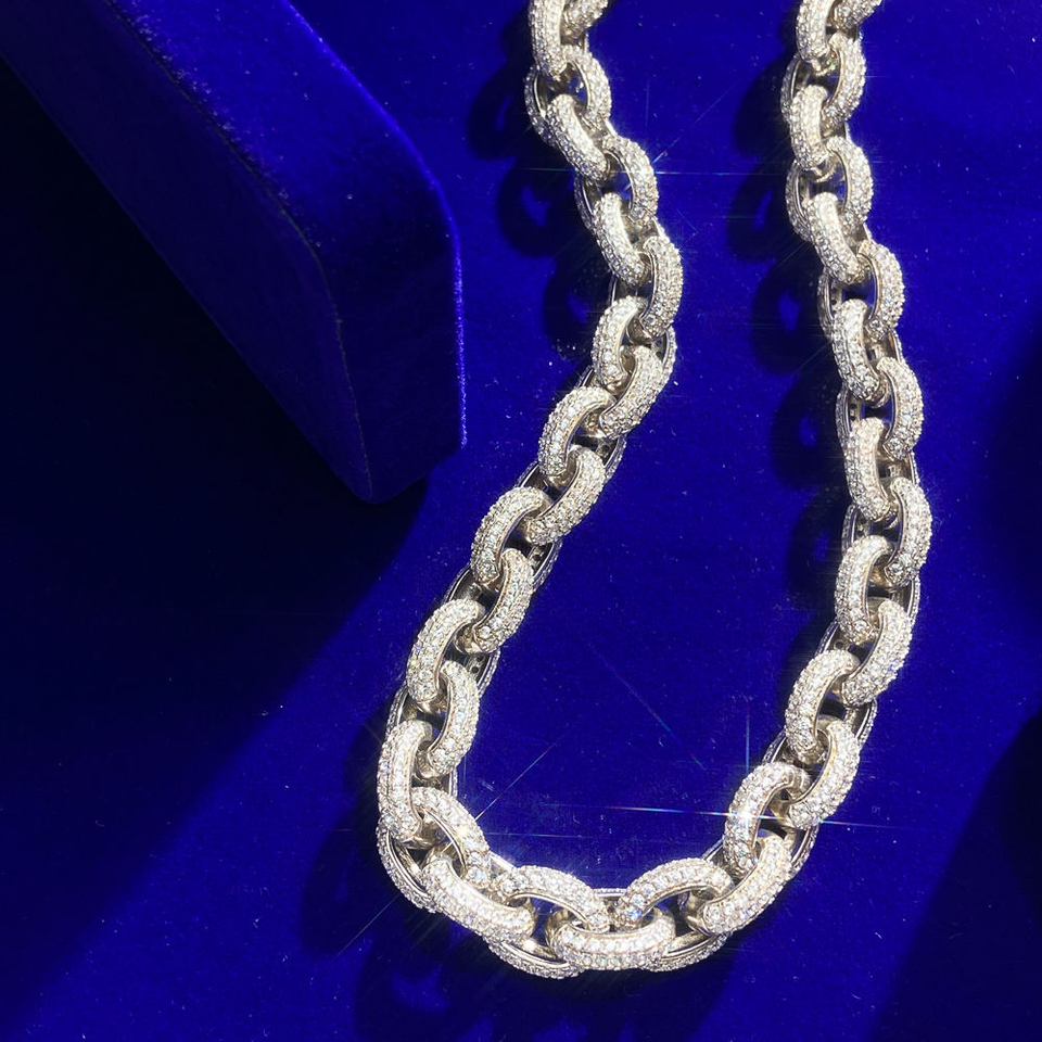 สร้อยคอเงินแท้ 925 ชุบทองคำขาว ประดับเพชรโมอิสซาไนต์ ทรงคิวบันลิงค์ สไตล์วินเทจ หรูหรา ดูเหมือนเพชรแท้ เหมาะสำหรับฮิปฮอป ของขวัญสำหรับทุกเพศ