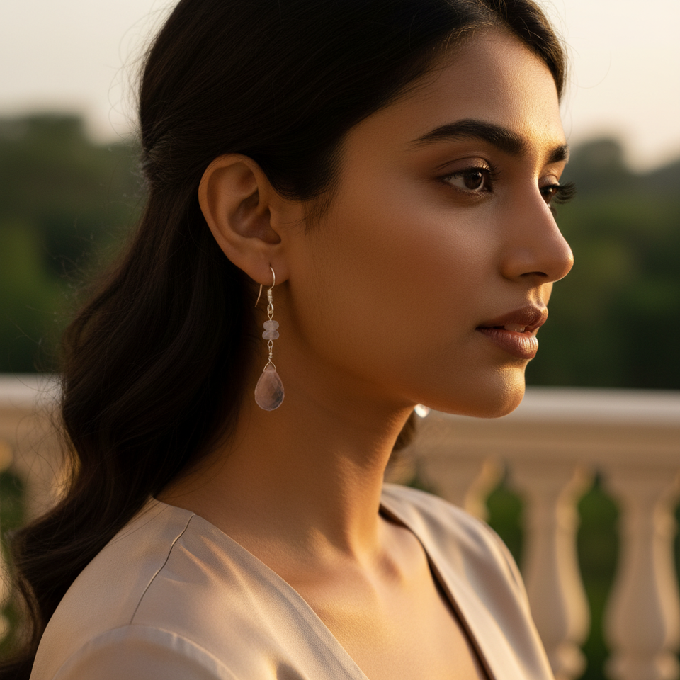 ต่างหูเงินแท้ 925 ประดับโรสควอตซ์ ดีไซน์ทันสมัยสำหรับผู้หญิง