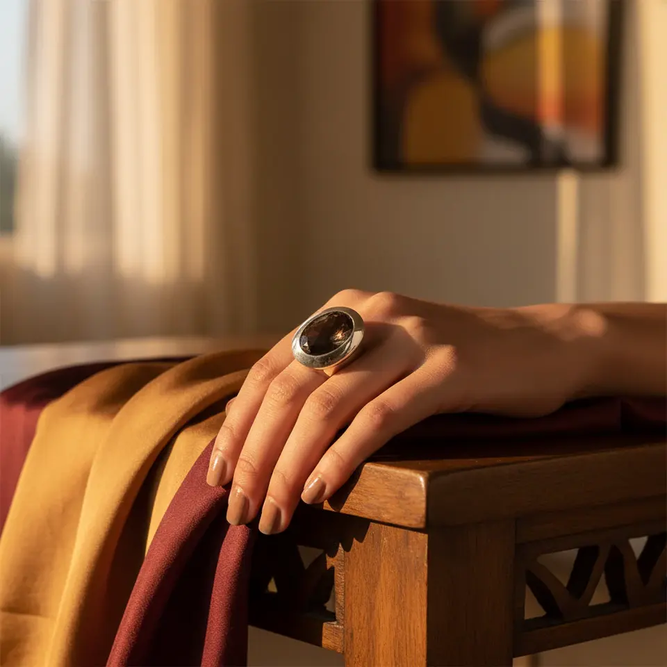 แหวนเงินแท้ 925 ประดับควอตซ์สโมกกี้ สำหรับผู้หญิง ทำมือ สไตล์โบฮีเมียน เครื่องประดับโดดเด่น ชุบโรเดียม ฝังโทแพซ ได้รับการรับรองจาก GRS