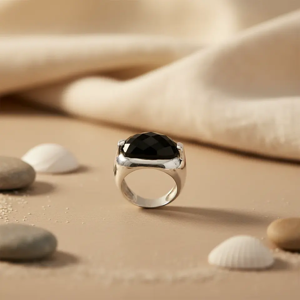 แหวนเงินแท้ 925 ประดับพลอยออนิกซ์ ดีไซน์ฮิปฮอป ชุบทอง สำหรับผู้หญิง