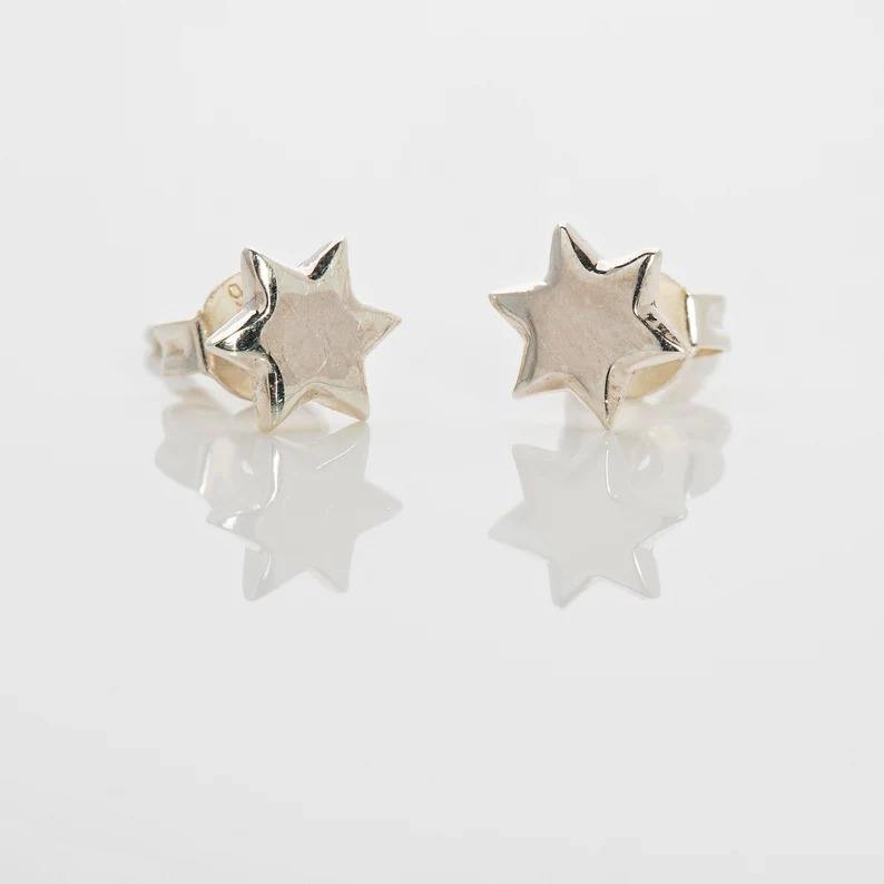 ต่างหูกระดุมรูปดาวสีเงิน925ต่างหูเงินสเตอริ่งเครื่องประดับทำมือสำหรับผู้หญิงต่างหูอินเดีย