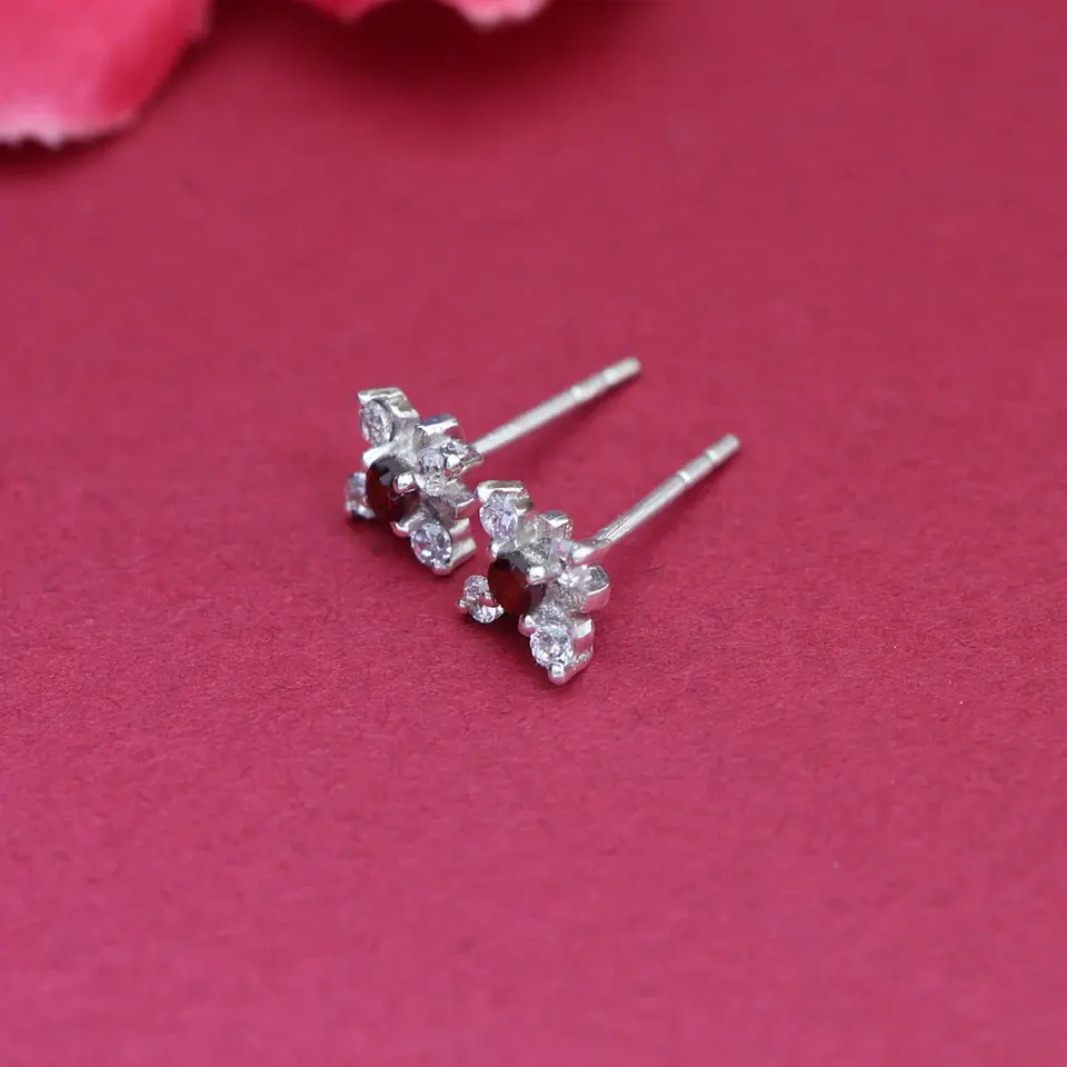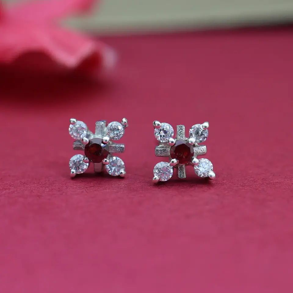 ต่างหูเงินแท้ 925 ประดับพลอยสีแดง ดีไซน์เรขาคณิตทันสมัย เหมาะสำหรับงานหมั้น - พลอยรูปทรงลูกแพร์ ทับทิม มรกต เพทาย ไข่มุก ทับทิม