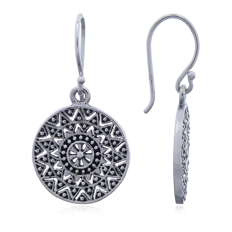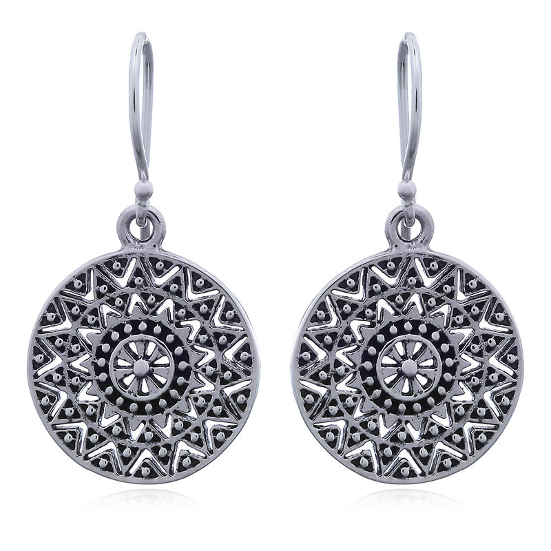 ต่างหูเงินแท้ 925 ลายพระอาทิตย์มันดาลา สไตล์ศาสนา ฮินดู จี้รูปสัญลักษณ์ ผลิตในประเทศไทย น้ำหนัก 3.96 กรัม