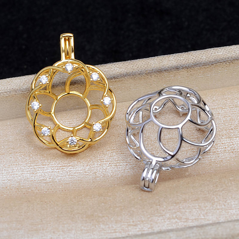 จี้รูปดอกทานตะวันเงินแท้ 925 ยี่ห้อเวนชี่ อุปกรณ์ DIY สำหรับทำเครื่องประดับมุก แบบโปร่ง สำหรับใส่ไข่มุกขนาด 6 มม. 16 มม.