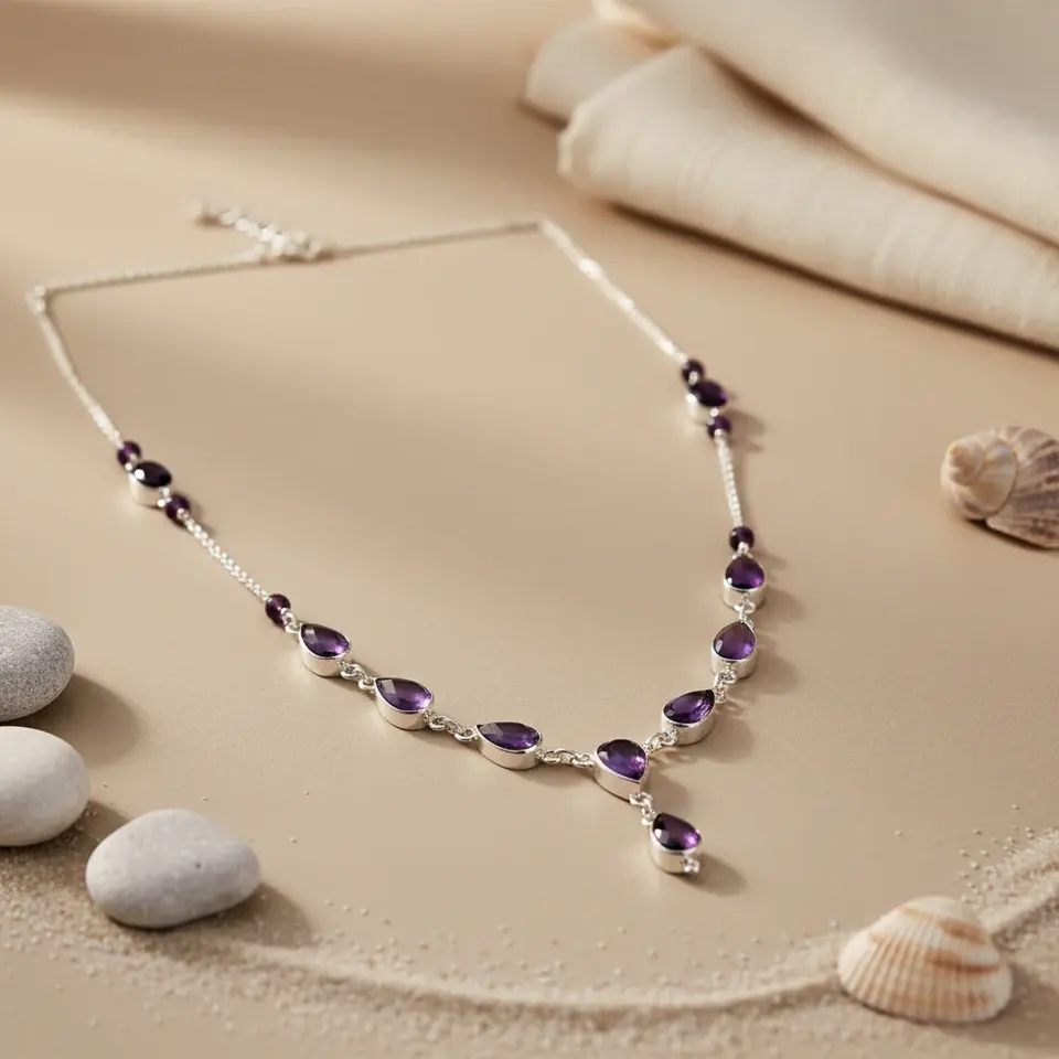 สร้อยคอเงินแท้ 925 ประดับพลอยทรงหยดน้ำสำหรับผู้หญิง เครื่องประดับคริสตัลสุดหรู