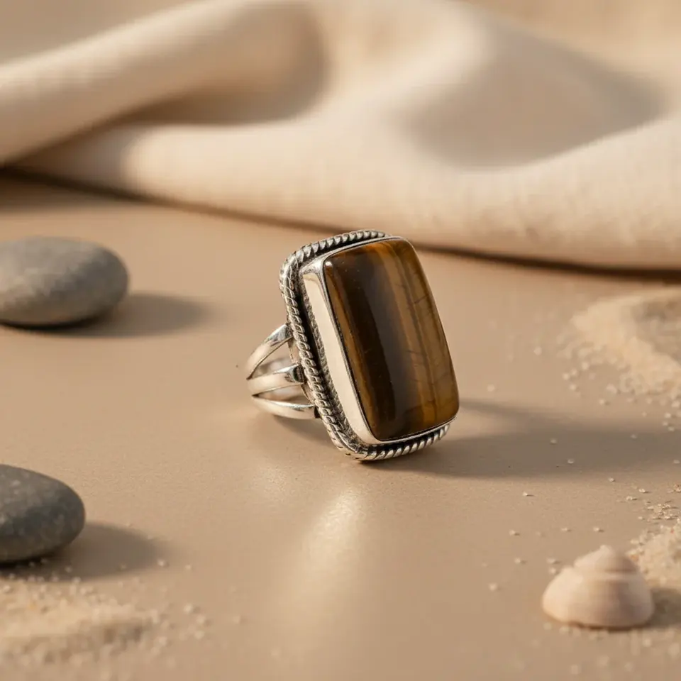 แหวนเงินแท้ 925 ประดับพลอยตาเสือทรงสี่เหลี่ยมสำหรับผู้หญิง