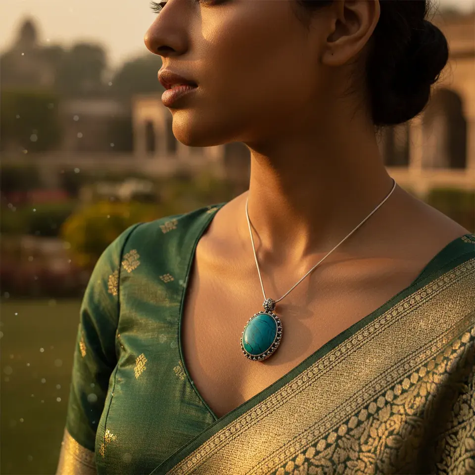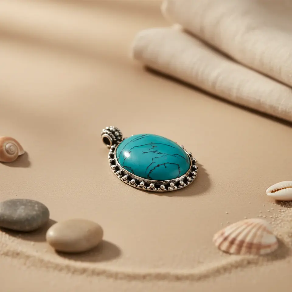 จี้เงินแท้ 925 ประดับพลอยเทอร์ควอยซ์ทรงรี งานแฮนด์เมด เครื่องประดับทางศาสนา ชุบทองคำขาว พร้อมจี้โรเดียม