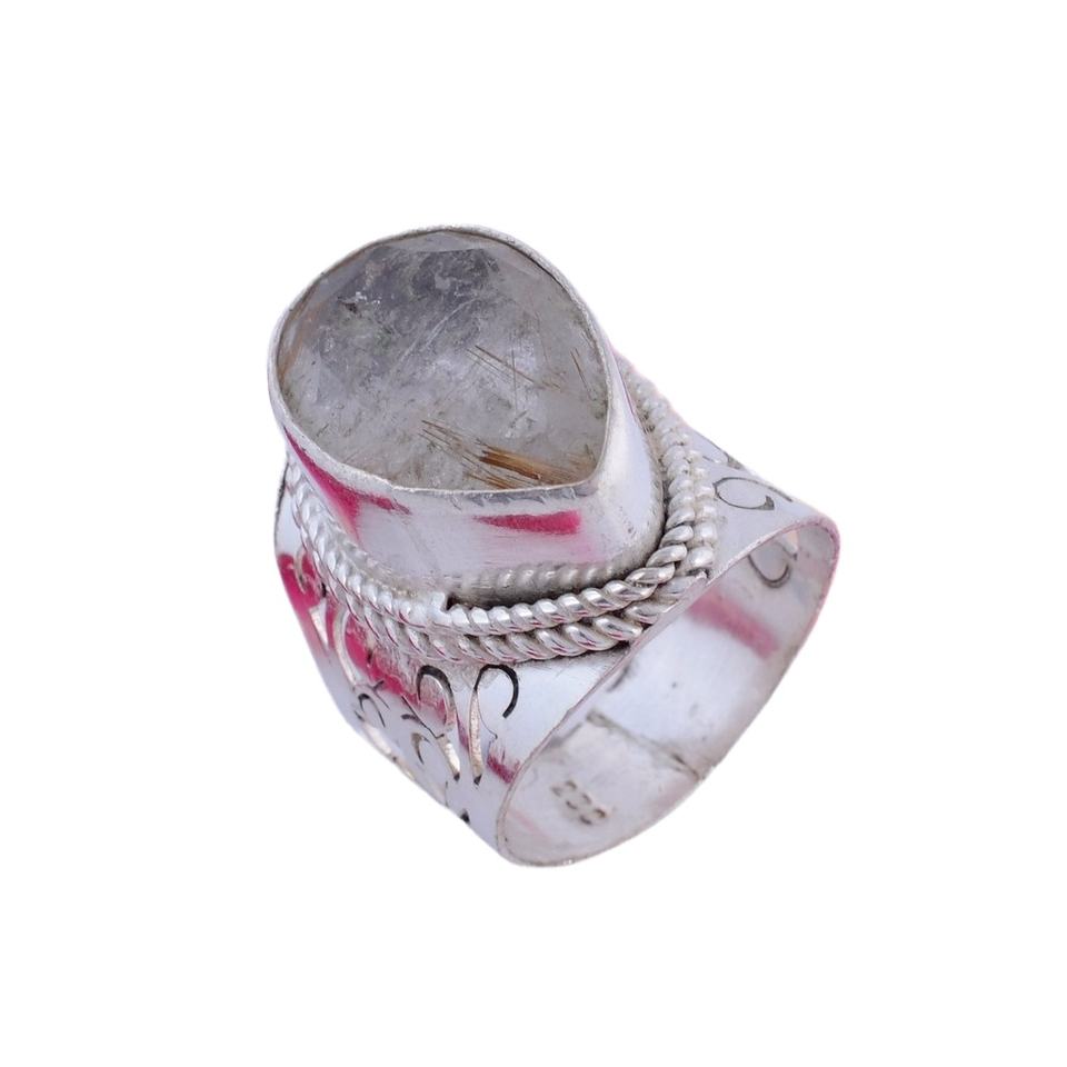 แหวนแต่งงานเงิน925ทำด้วยมือเครื่องประดับชั้นดีพลอยควอตซ์ประดับเพชรพลอยลูกแพร์ดีไซน์เนอร์สินค้าจำนวนมาก