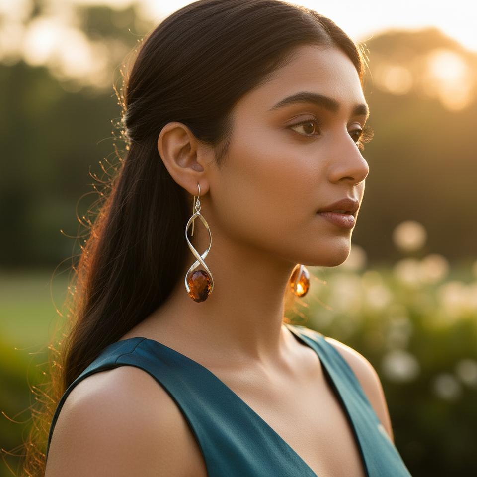 ต่างหูเงินแท้ 925 ประดับพลอยซิทริน สำหรับผู้หญิง ดีไซน์ทันสมัย