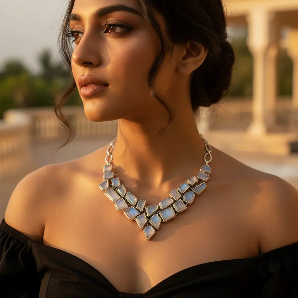 สร้อยคอเงินแท้ 925 ประดับมูนสโตน สำหรับผู้หญิง ดีไซน์หรูหรา ประดับด้วยลูกปัด