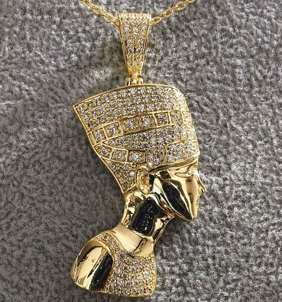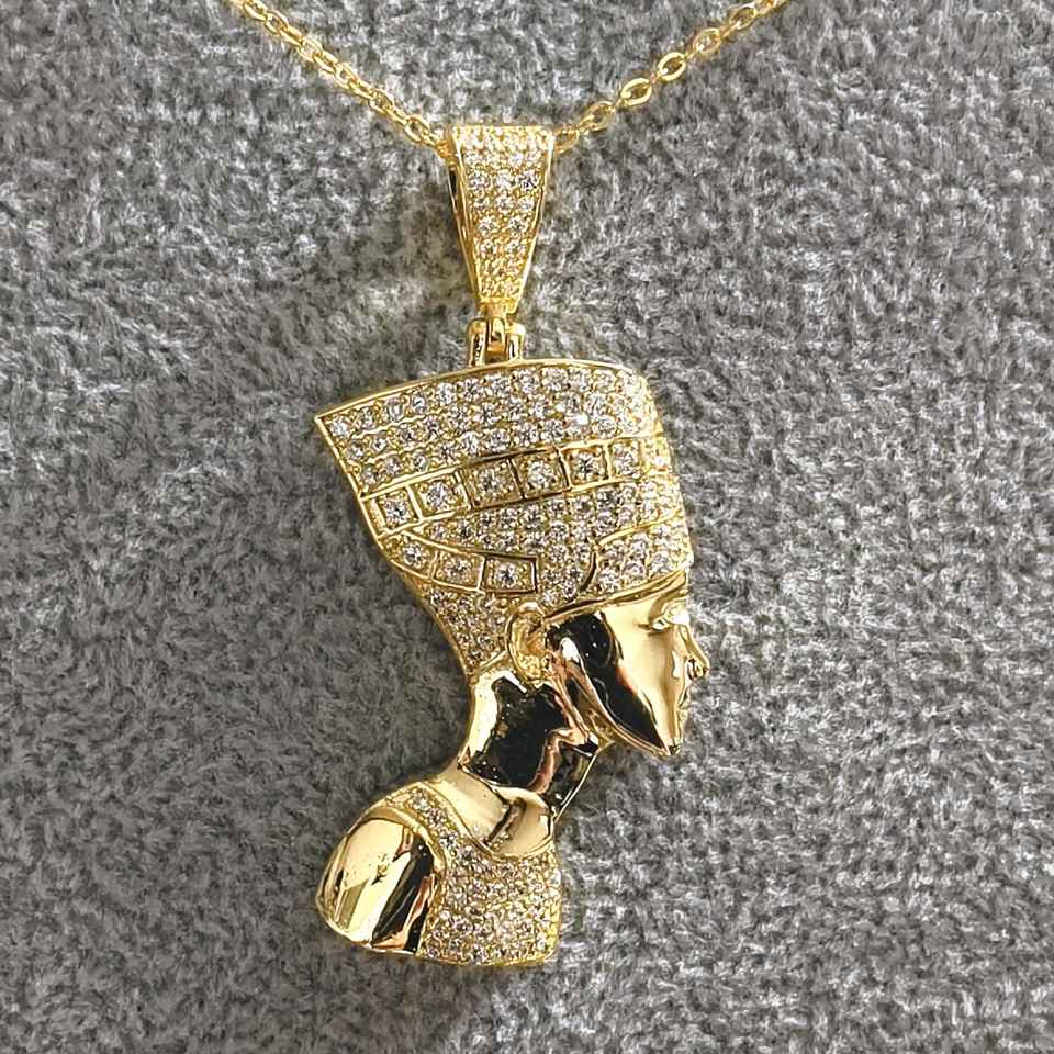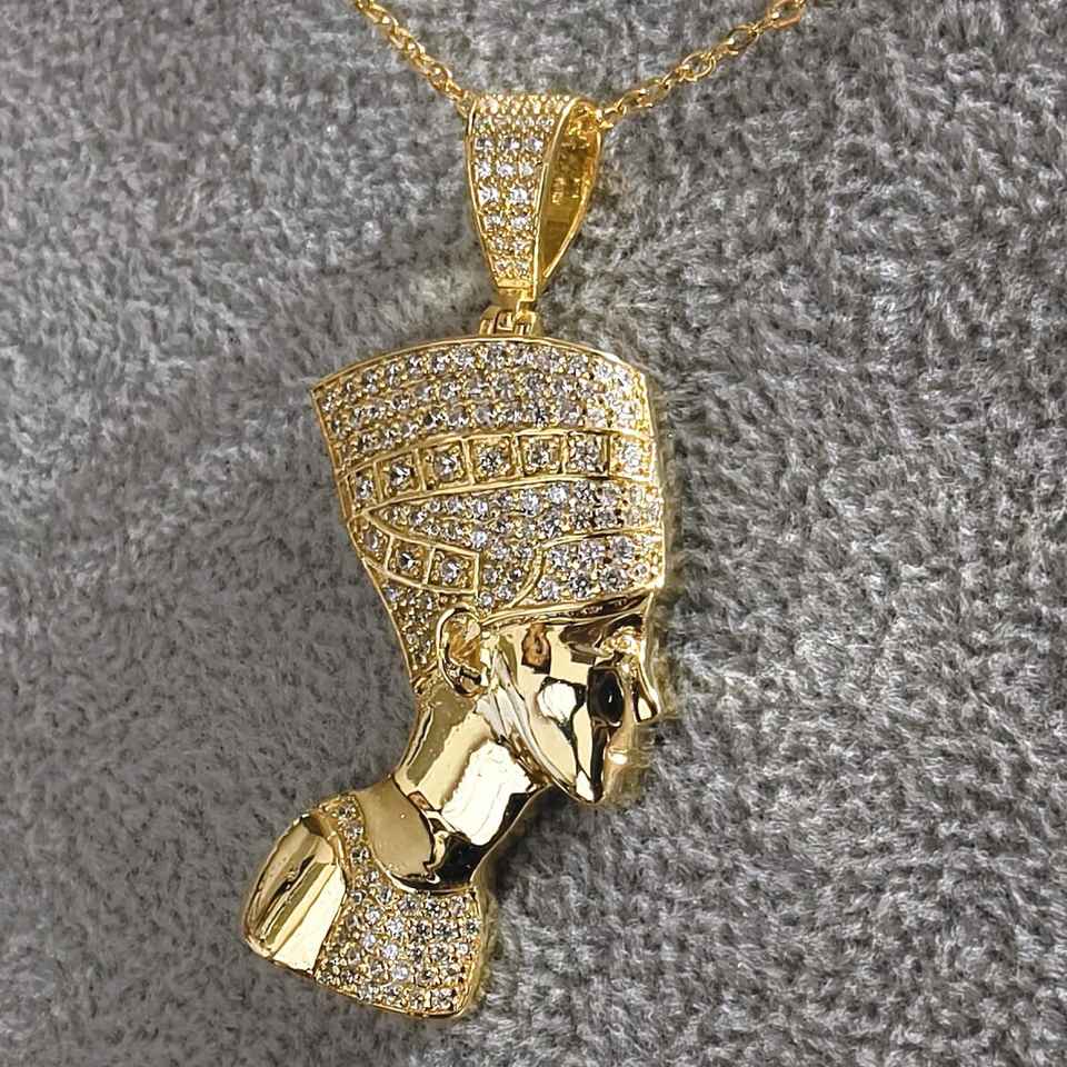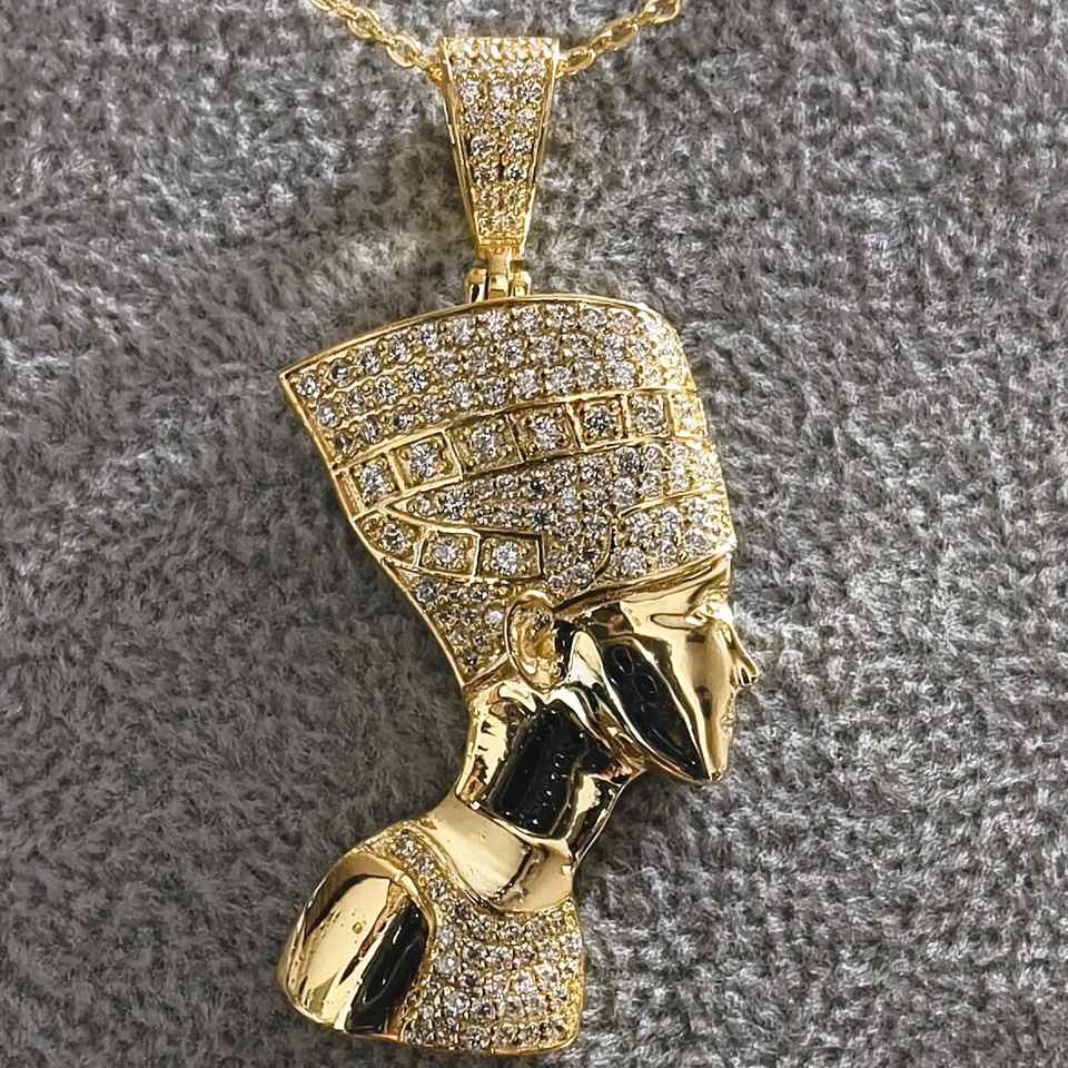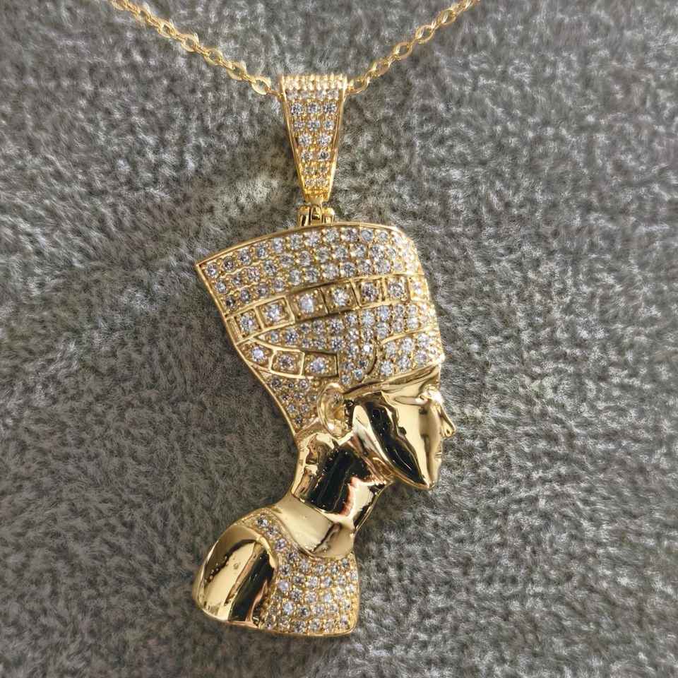 จี้925เงินและทองจี้ฟาโรห์อียิปต์และเครื่องลาง VVS Moissanite Queen Nefertiti จี้สไตล์วินเทจ