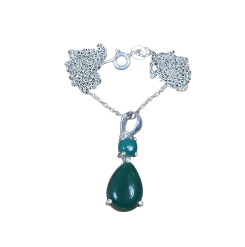 925เครื่องประดับจี้เงินแท้แบบคลาสสิกสำหรับผู้หญิง925เงินสเตอร์ลิงสีเขียวพลอยนิลสไตล์ Boho ทำมือของขวัญ
