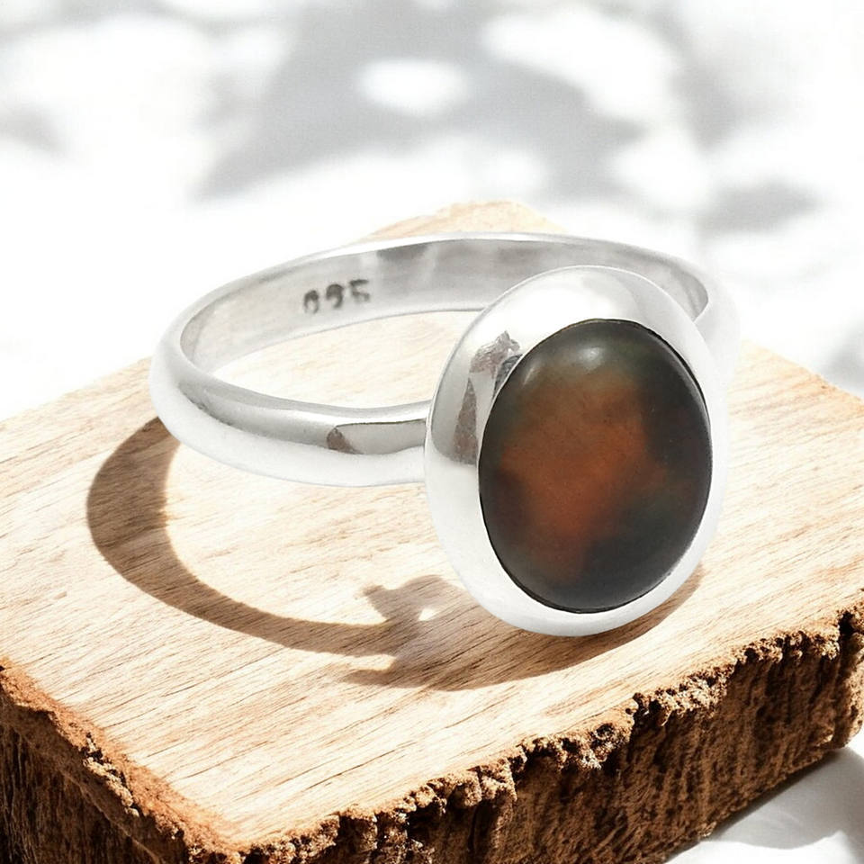 แหวนโอปอลสีดำสังเคราะห์สังเคราะห์100% เงินแท้925เป็นของขวัญแหวนสัญญาที่ทันสมัยสำหรับเธอ