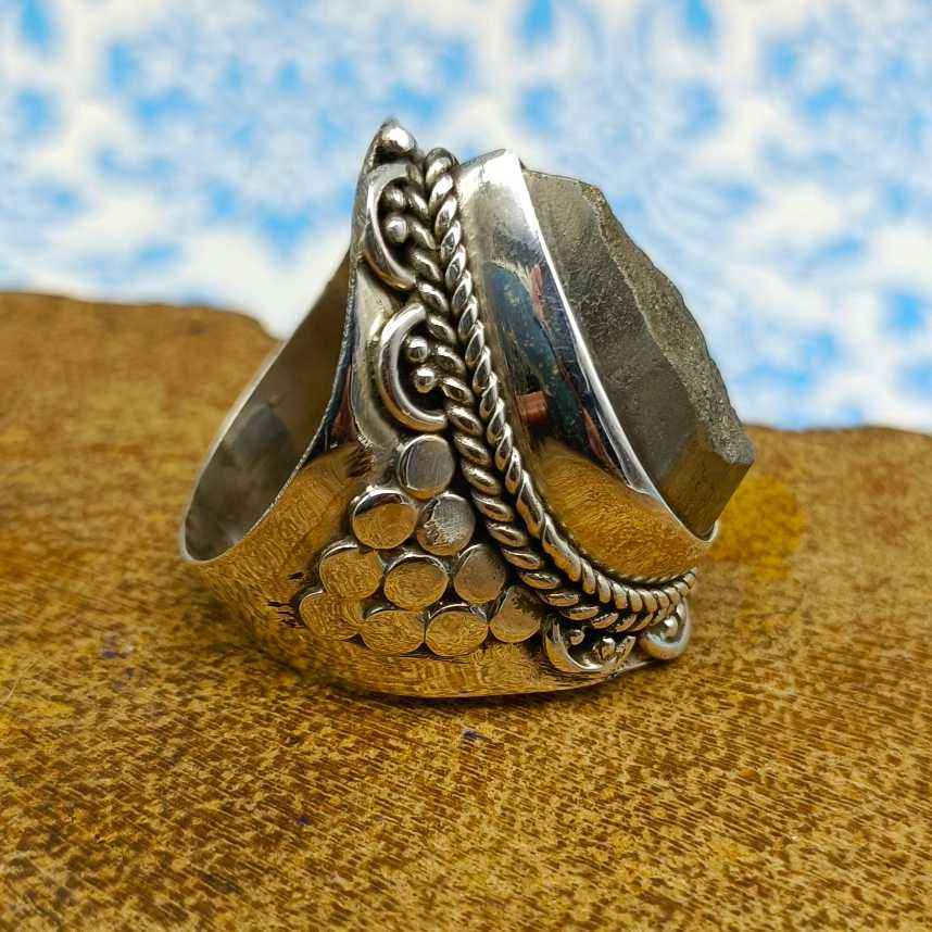 แหวนพลอยไพไรต์สีเงินแท้925อัญมณีเงินธรรมชาติเครื่องประดับเงินไพไรต์อัญมณีเงินโบราณเครื่องประดับแฮนด์เมดผู้ส่งออก
