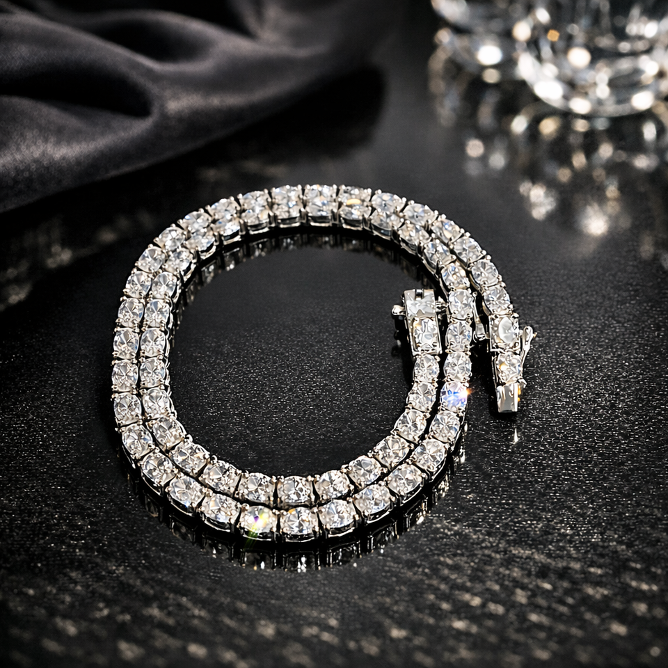 สร้อยคอเทนนิสฮิปฮอปแบบกำหนดเอง ชุบโรเดียมเงินแท้ 925 ประดับเพชรโมอิสซาไนต์รูปไข่ สำหรับงานหมั้น งานแต่งงาน และงานปาร์ตี้ เป็นของขวัญ