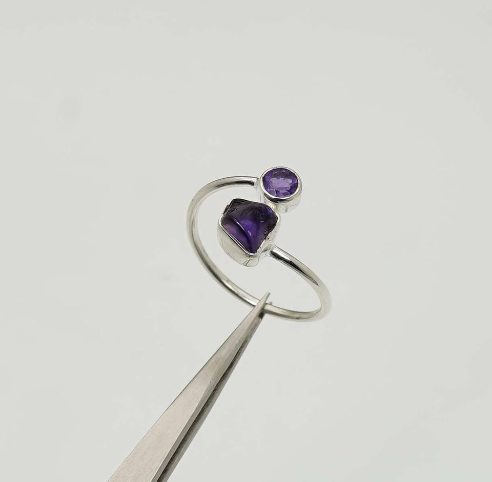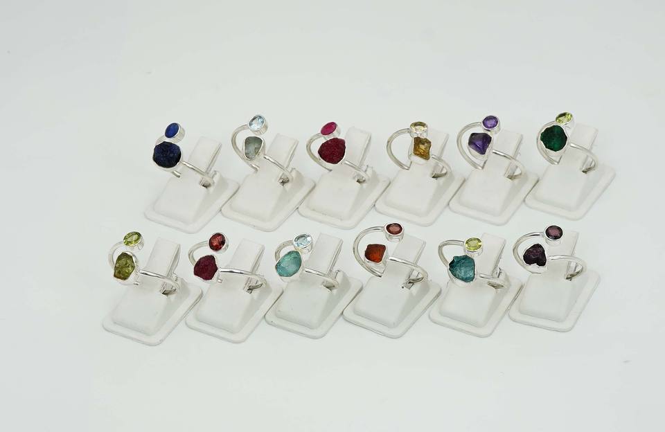 แหวนเงินสเตอร์ลิง925แข็งแบบปรับได้แหวนพลอยชั้นดีประดับอัญมณีหลายเรือนเครื่องประดับหินประจำเดือนเกิด-หยาบ