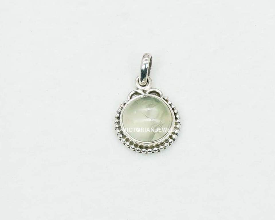จี้นำโชคสำหรับ925เงินสเตอร์ลิงเดือนสิงหาคมหินพรีไนต์พร้อมฐานหนามเตยทรงกลม