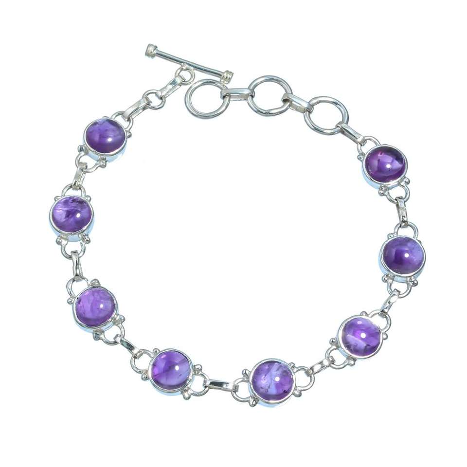 สร้อยข้อมือเงินสเตอร์ลิง925อเมทิสต์เครื่องประดับแฮนด์เมด