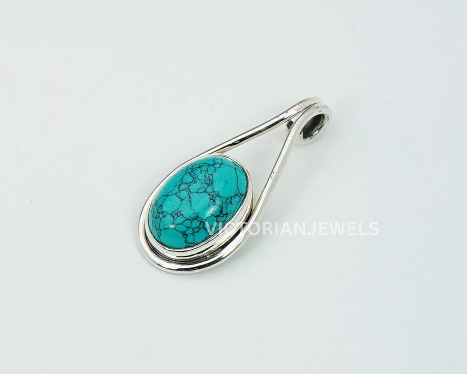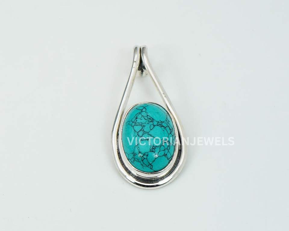 จี้พลอยเทอร์ควอยส์สีเงิน925พร้อมฝังขอบสีฟ้าเทอร์ควอยซ์สำหรับจี้เสน่ห์