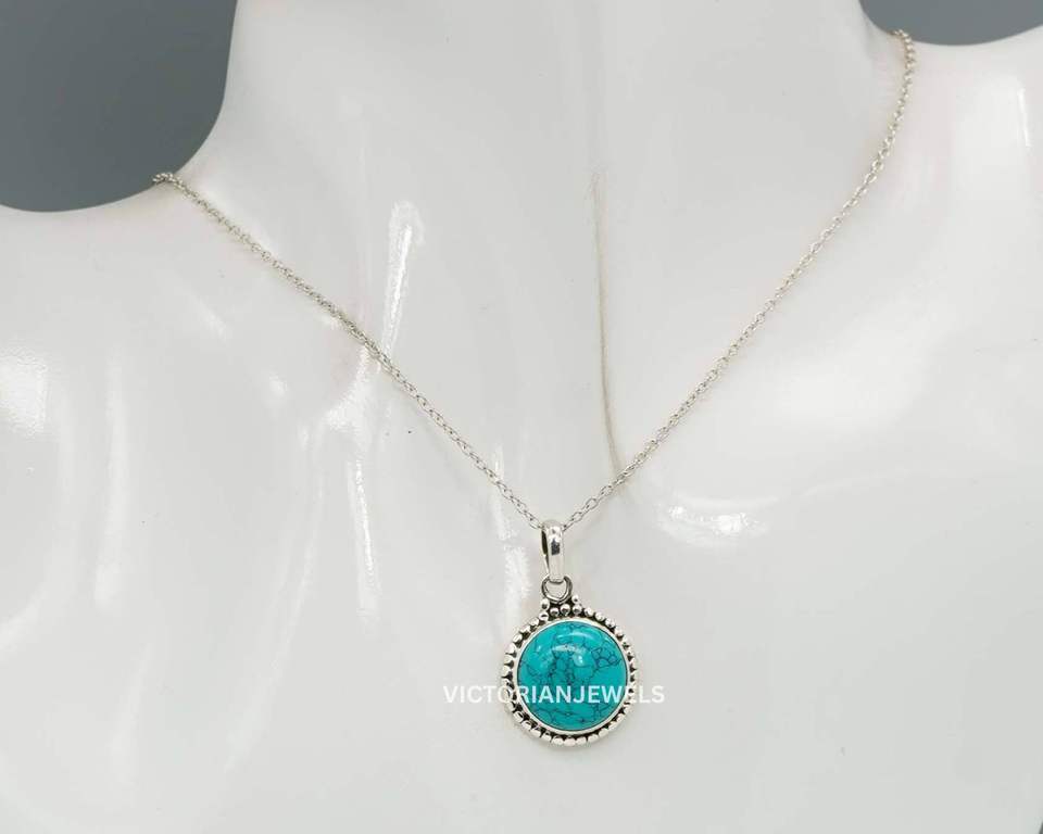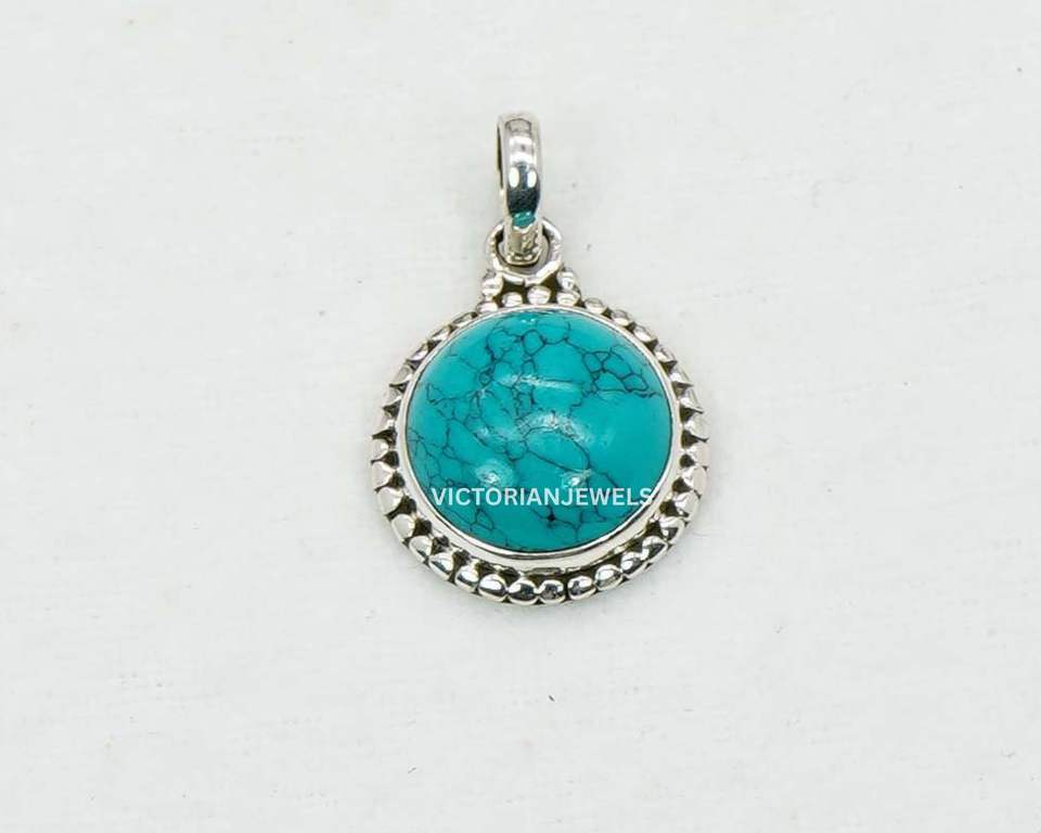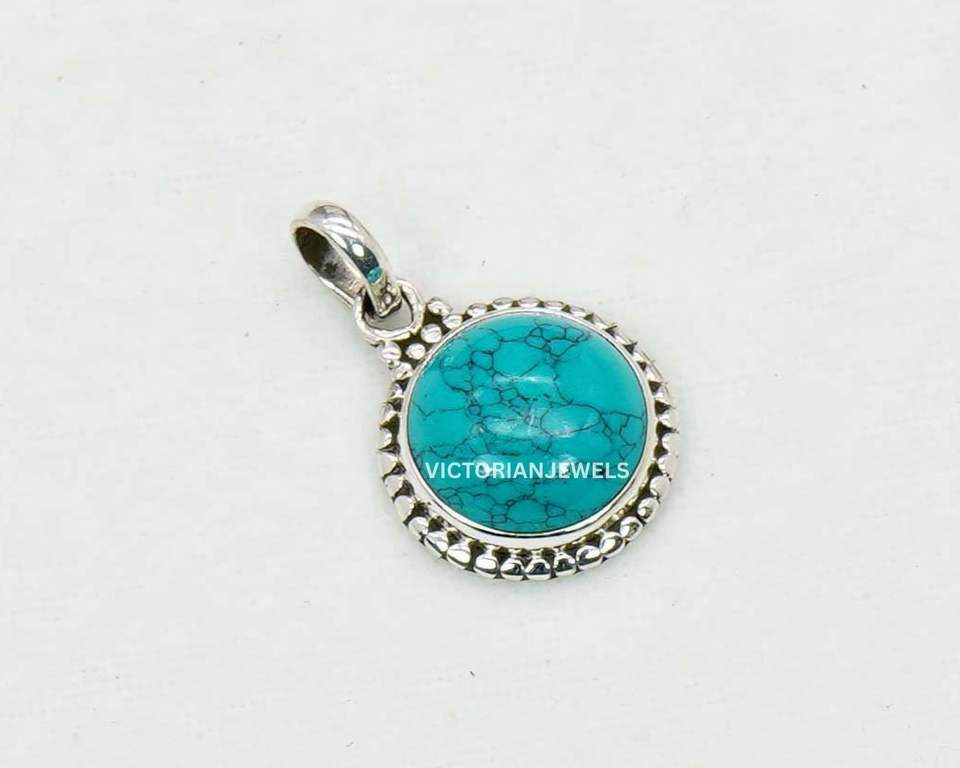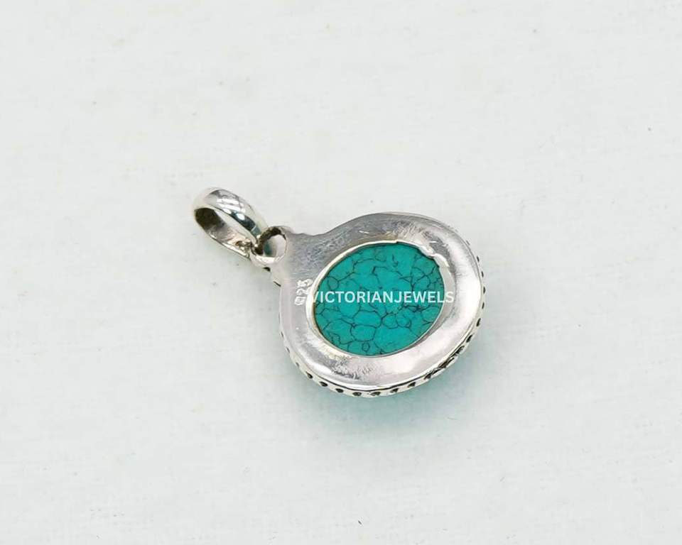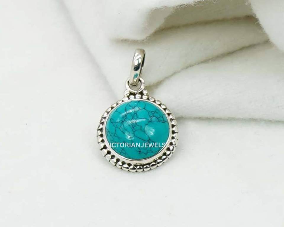 จี้นำโชคเดือนพลอยเทอร์ควอยซ์สีเงินสเตอร์ลิง925พร้อมฐานหนามเตยทรงกลม