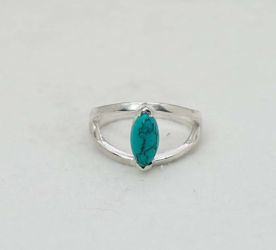 925สีเงินสเตอร์ลิงประดับพลอยเทอร์ควอยซ์พร้อมฐานขอบวงแหวนรอบดวงตารูปวงแหวนพลอยสีเทอร์ควอยซ์